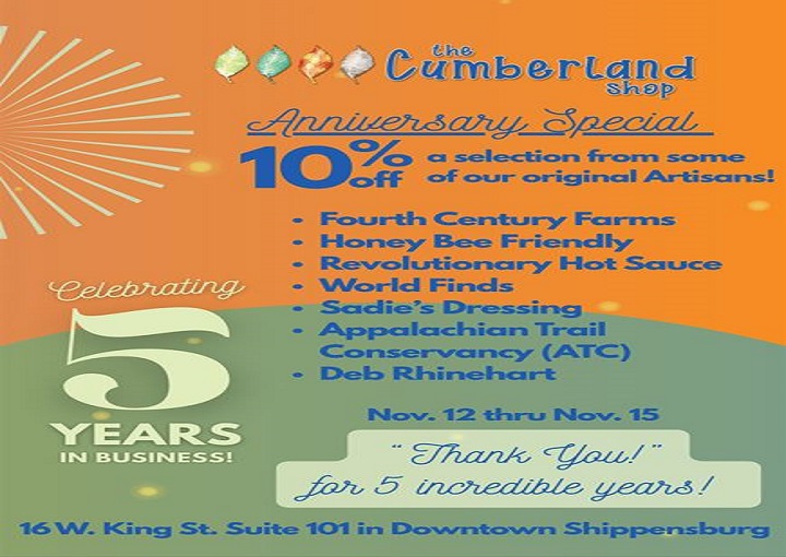 November 12th thru November 14th, 2025 (10:00 AM - 6:00 PM), and November 15th, 2025 (10:00 AM - 3:00 PM) On Wednesday, November 12th, 2025, The Cumberland Shop will be celebrating 5 years in business! We invite you to stop by the shop to celebrate with us. 10% off a selection from some of our […]