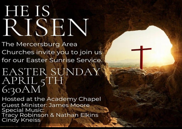 Sunday April 5th, 2026 * 6:30 AM The Mercersburg Area Churches invite you to join us for our Easter Sunrise Service. Hosted at the Academy Chapel Guest Minister: James Moore […]