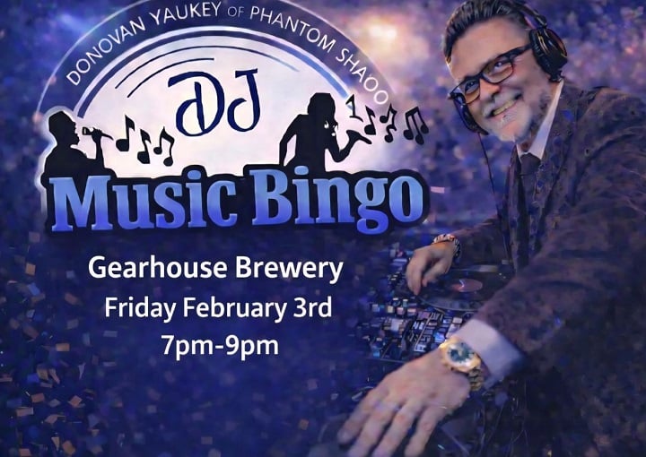 Friday February 6th, 2026 * 7:00 PM - 9:00 PM You want it, we got it! You asked for music bingo, and here it is! Hosted by DJ Donovan Yaukey of Phantom Shadow, this is sure to be a ton of fun and a party we'll host again!