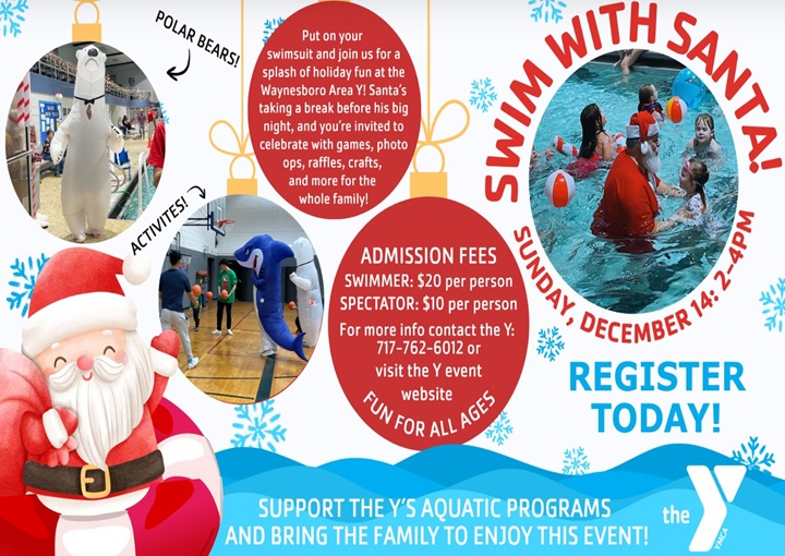 Sunday December 14th, 2025 * 2:00 PM - 4:00 PM Swim with Santa is more than just a fun holiday event — it’s a fundraiser that directly supports the Waynesboro Area YMCA’s aquatic programs! Every dollar collected helps us maintain and enhance the programs that teach water safety, build confidence, and create lasting memories for […]