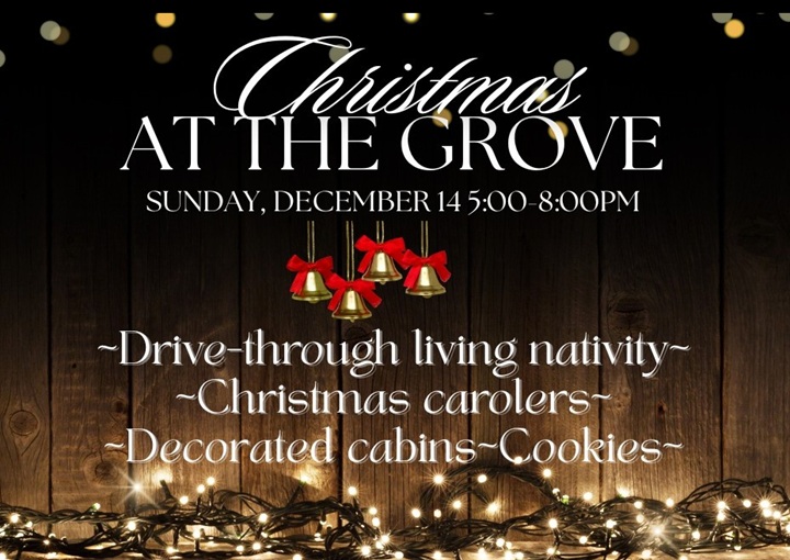 Sunday December 14th, 2025 * 5:00 PM - 8:00 PM We hope you can join us for this year's Christmas at the Grove here at Rhodes Grove Camp. We will have the cottages and cabins decorated and lit up to enjoy as well as cookies, carolers, and a drive-through nativity!