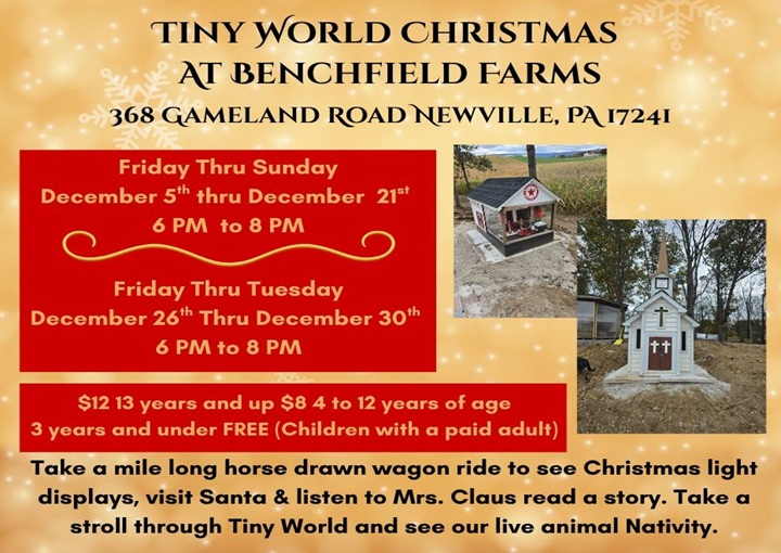 Friday December 5th, Saturday December 6th, and Sunday December 7th, 2025 * 5:30 PM - 8:30 PM Travel back in time and experience a live dramatic event with others on a wagon ride! Don't miss this special Christmas even - The Cradle to the Cross!! Ride in a wagon and listen to the story unfold […]