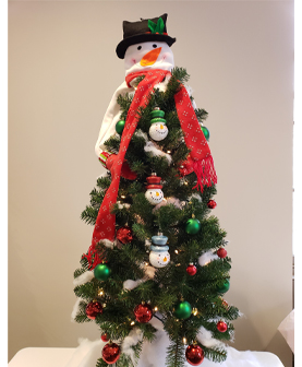 This petite tree with traditional colors is “jazzed” upwith jingle bells. The perfect fun and festive