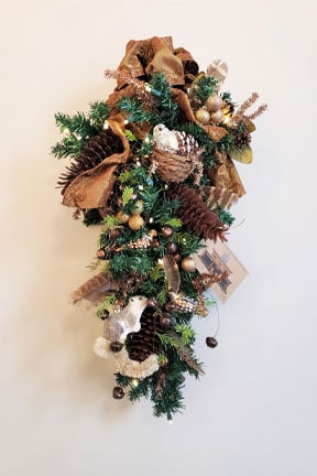 This pre-lit wreath celebrates the bounty of nature and the beauty of the South Mountain Region, decorated with dried natural elements and ribbon. The South Mountain landscape is a distinct area of south-central Pennsylvania that is nearly a half-million acres in size and includes portions of Adams, Cumberland, Franklin and York counties. The South Mountain Partnership seeks to protect and preserve this region for generations to come through a conservation network of 60 partners.